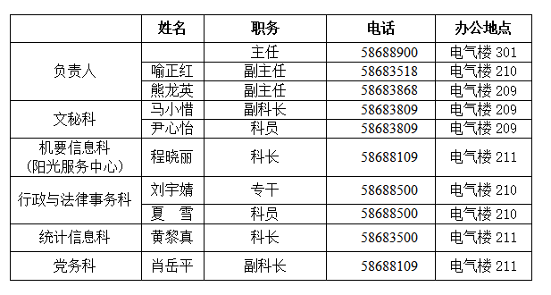 党政办公室机构人员组成