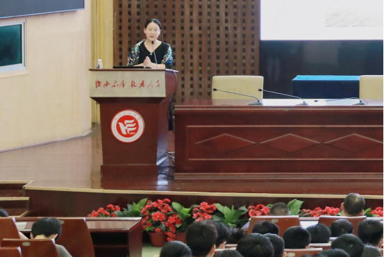 党委副书记彭立威以《“学好‘四史’,培根铸魂》为题,阐述了“四史”是什么、“四史”学习什么,引导青年学生充分认识中国共产党为什么“能”、马克思主义为什么“行”、中国特色社会主义为什么“好”。