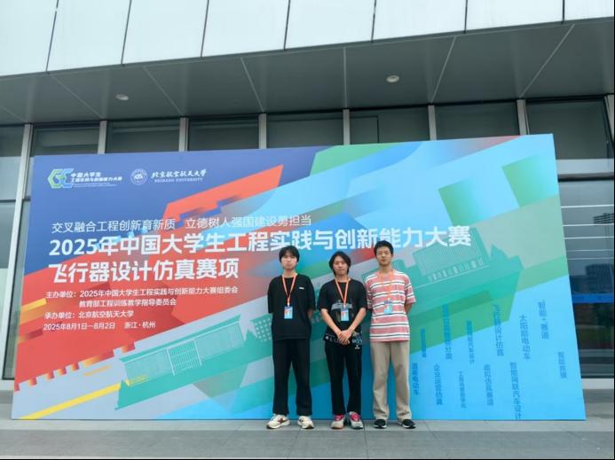 近日,2025年中国大学生工程实践与创新能力大赛飞行器设计仿真赛项全国总决赛在杭州落下帷幕。我校机械工程学院“你说的都队”(成员:欧阳卓、郑颖、沈文雄)凭借出色表现,获全国特等奖,创造了我校在该项赛事中的历史最佳成绩。